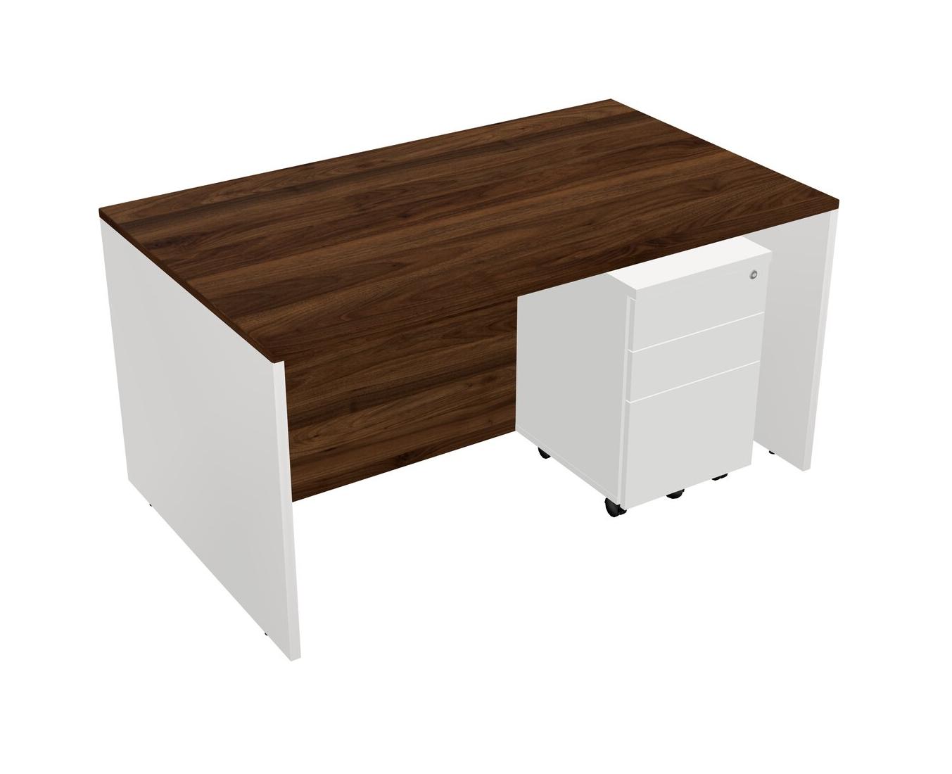 Columbia Walnut Rectangular Office Desk Plus White Wooden Mobile Drawers