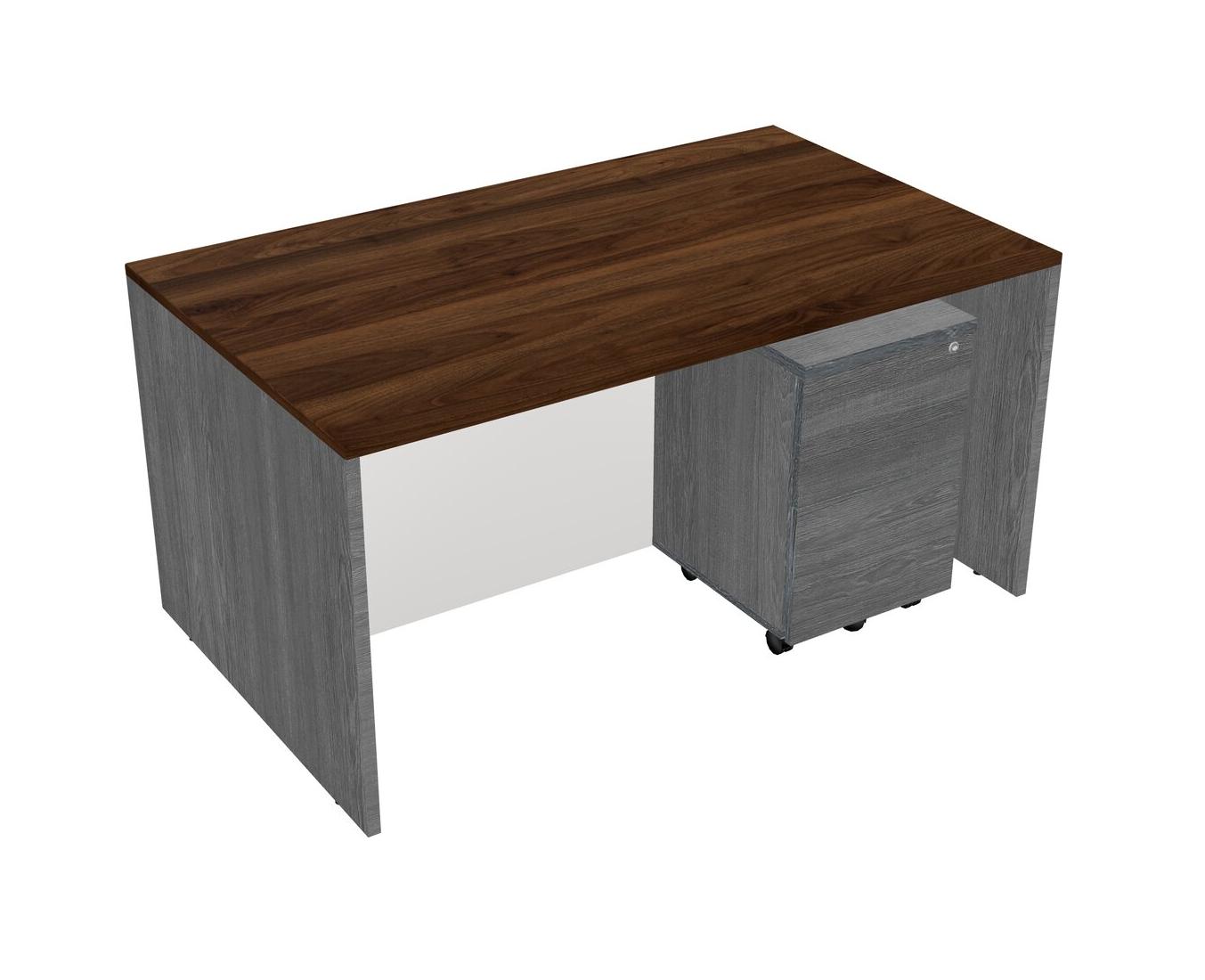 Columbia Walnut Rectangular Office Desk Plus Grey Wooden Mobile Drawers