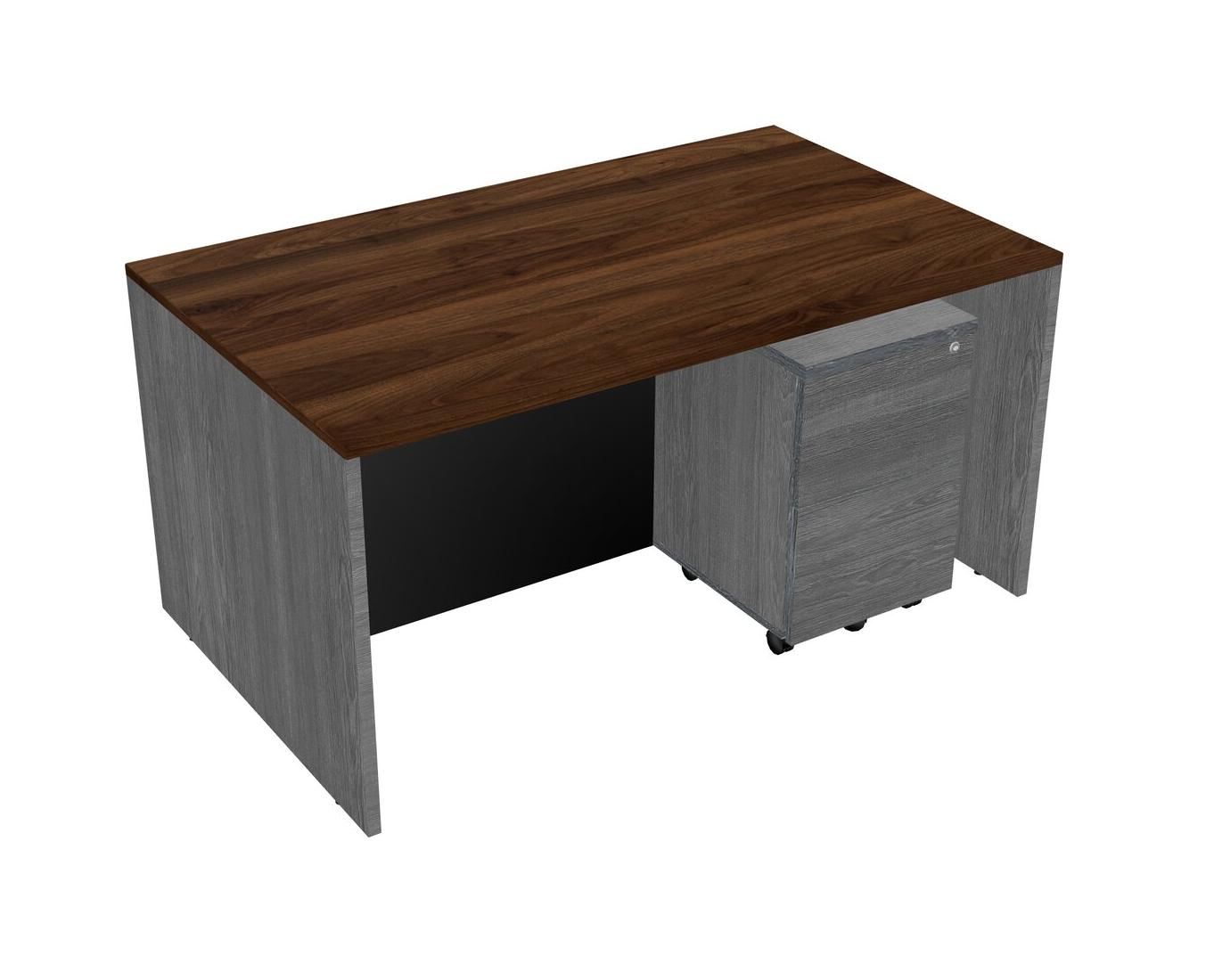 Columbia Walnut Rectangular Office Desk Plus Grey Wooden Mobile Drawers