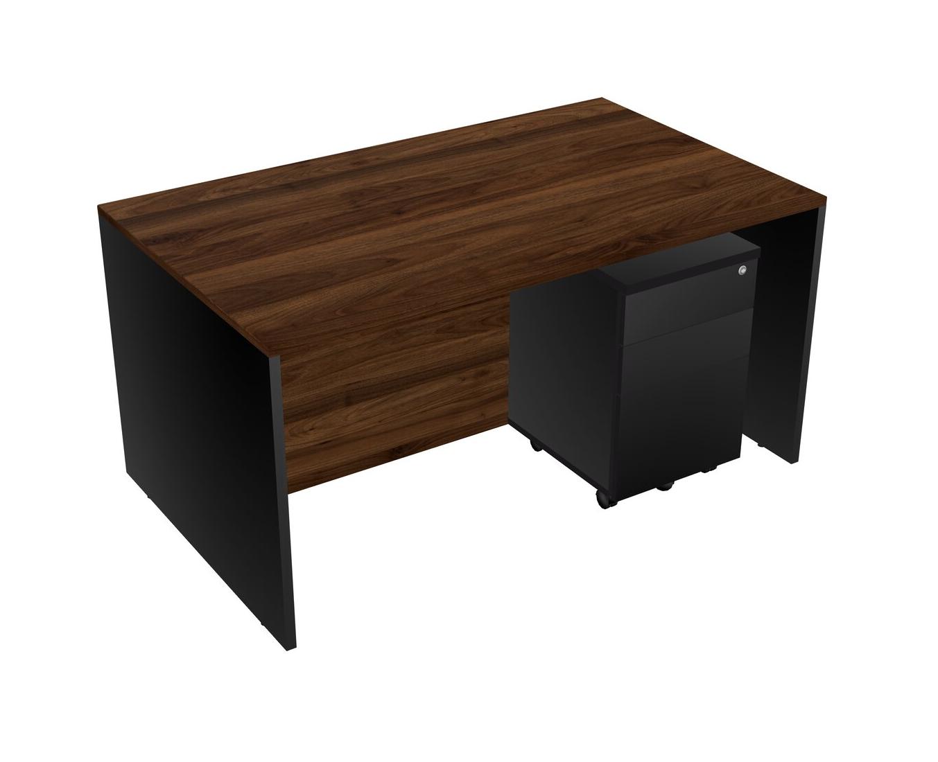 Columbia Walnut Rectangular Office Desk Plus Black Wooden Mobile Drawers