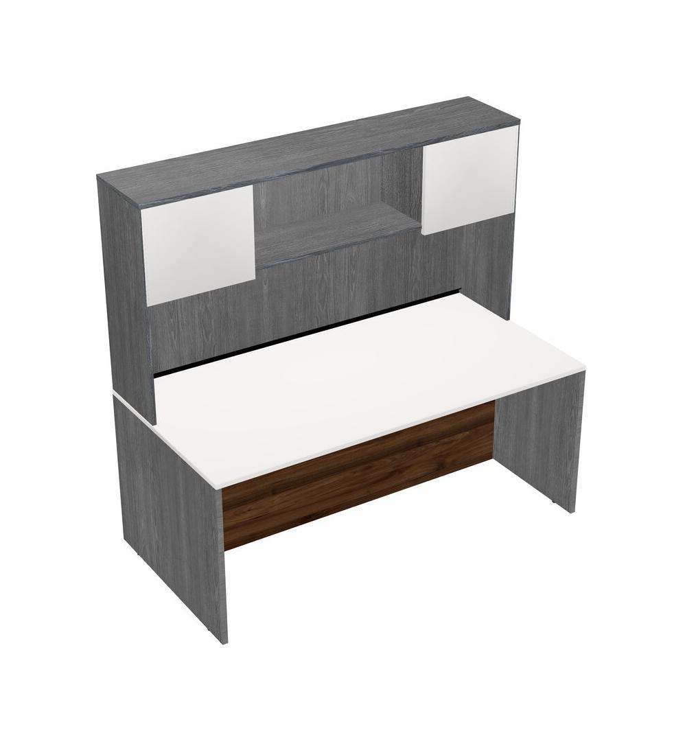 White Rectangular Office Desk And Grey Hutch