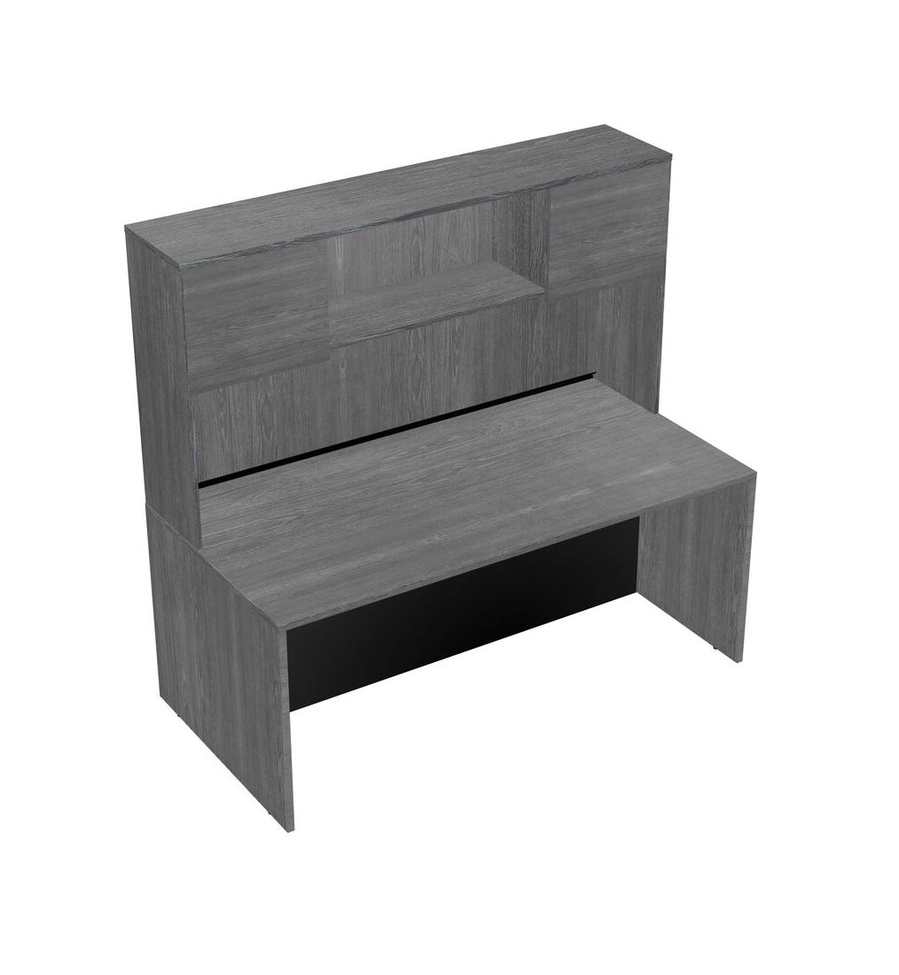Grey Rectangular Office Desk And Grey Hutch