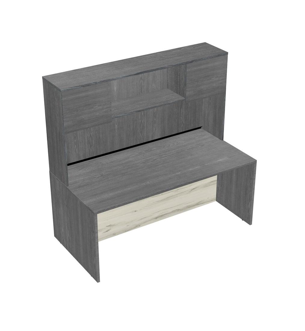 Grey Rectangular Office Desk And Grey Hutch