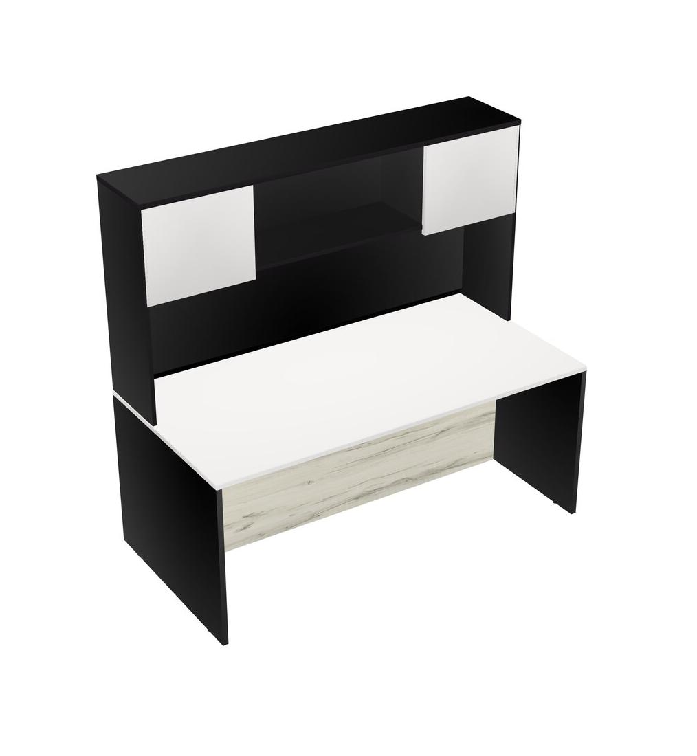 White Rectangular Office Desk And Black Hutch