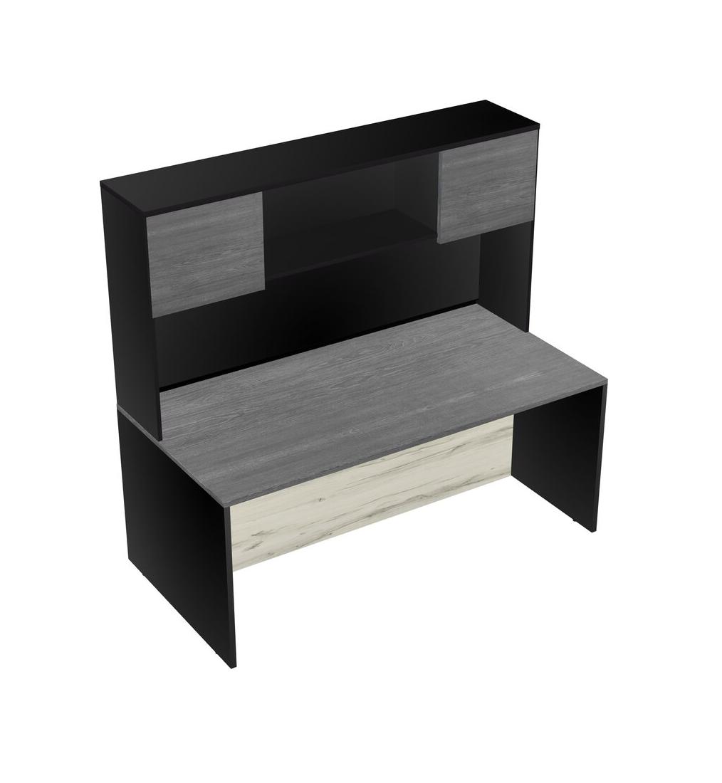 Grey Rectangular Office Desk And Black Hutch