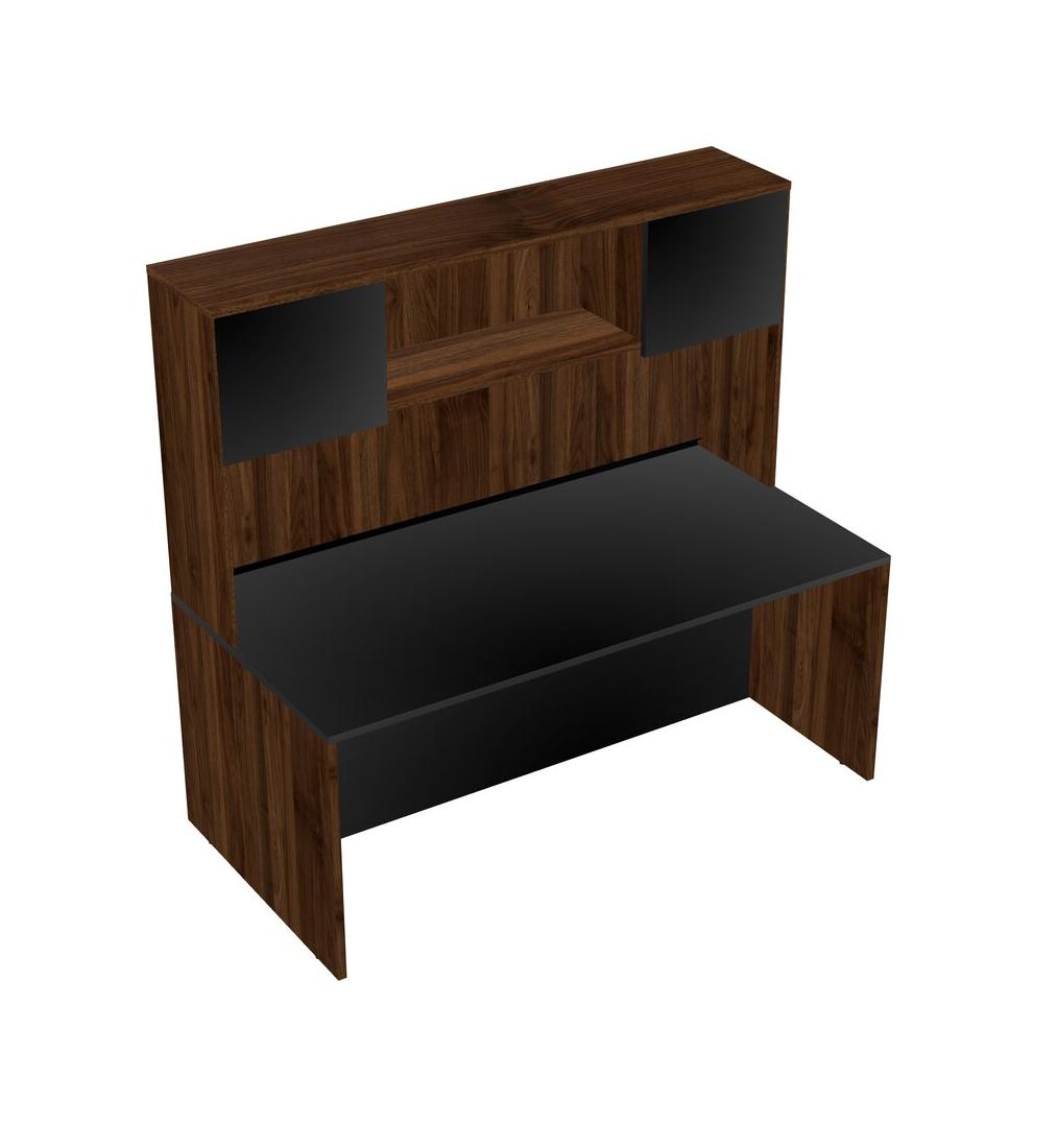 Black Rectangular Office Desk And Columbia Walnut Hutch