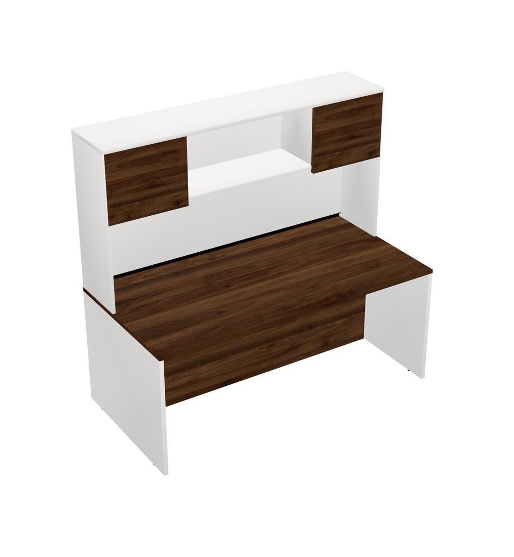 Columbia Walnut Rectangular Office Desk And White Hutch