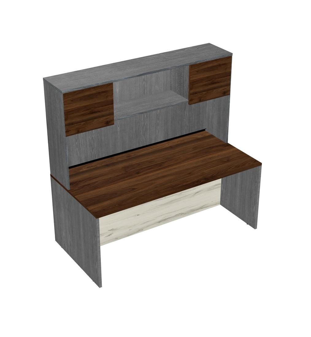 Columbia Walnut Rectangular Office Desk And Grey Hutch