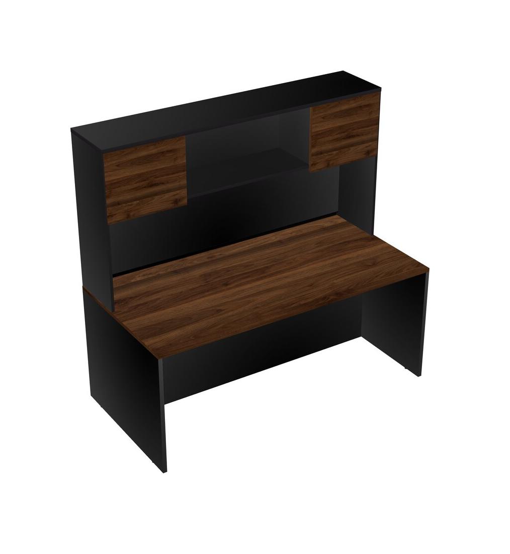 Columbia Walnut Rectangular Office Desk And Black Hutch