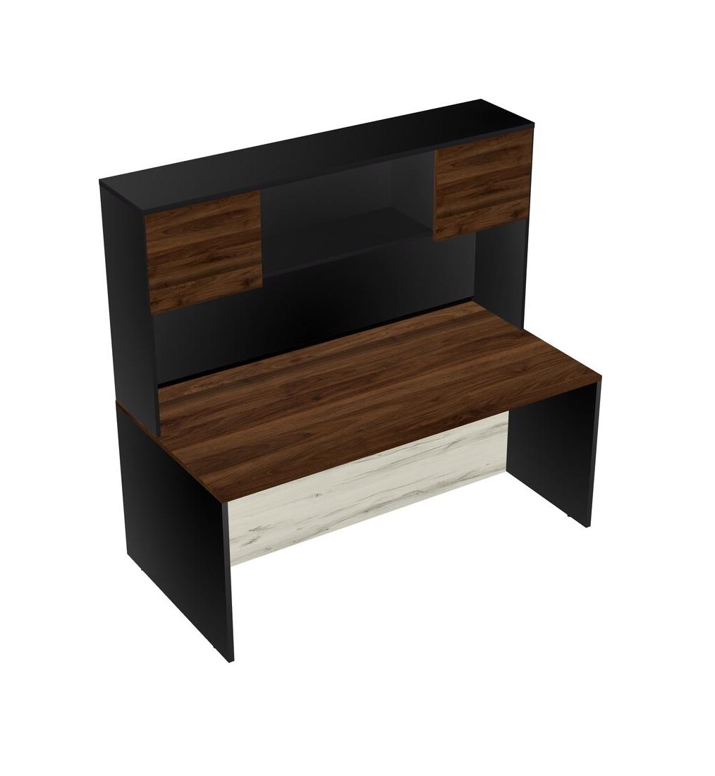 Columbia Walnut Rectangular Office Desk And Black Hutch