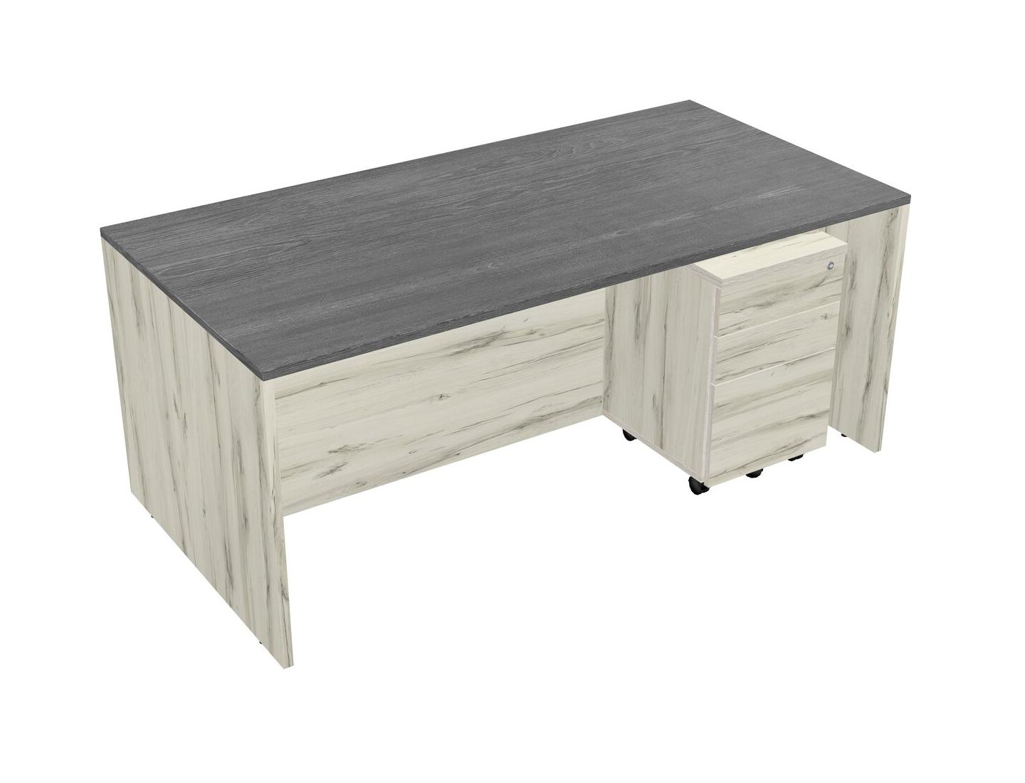 Grey Rectangular Office Desk Plus Heinne Holz Wooden Mobile Drawers