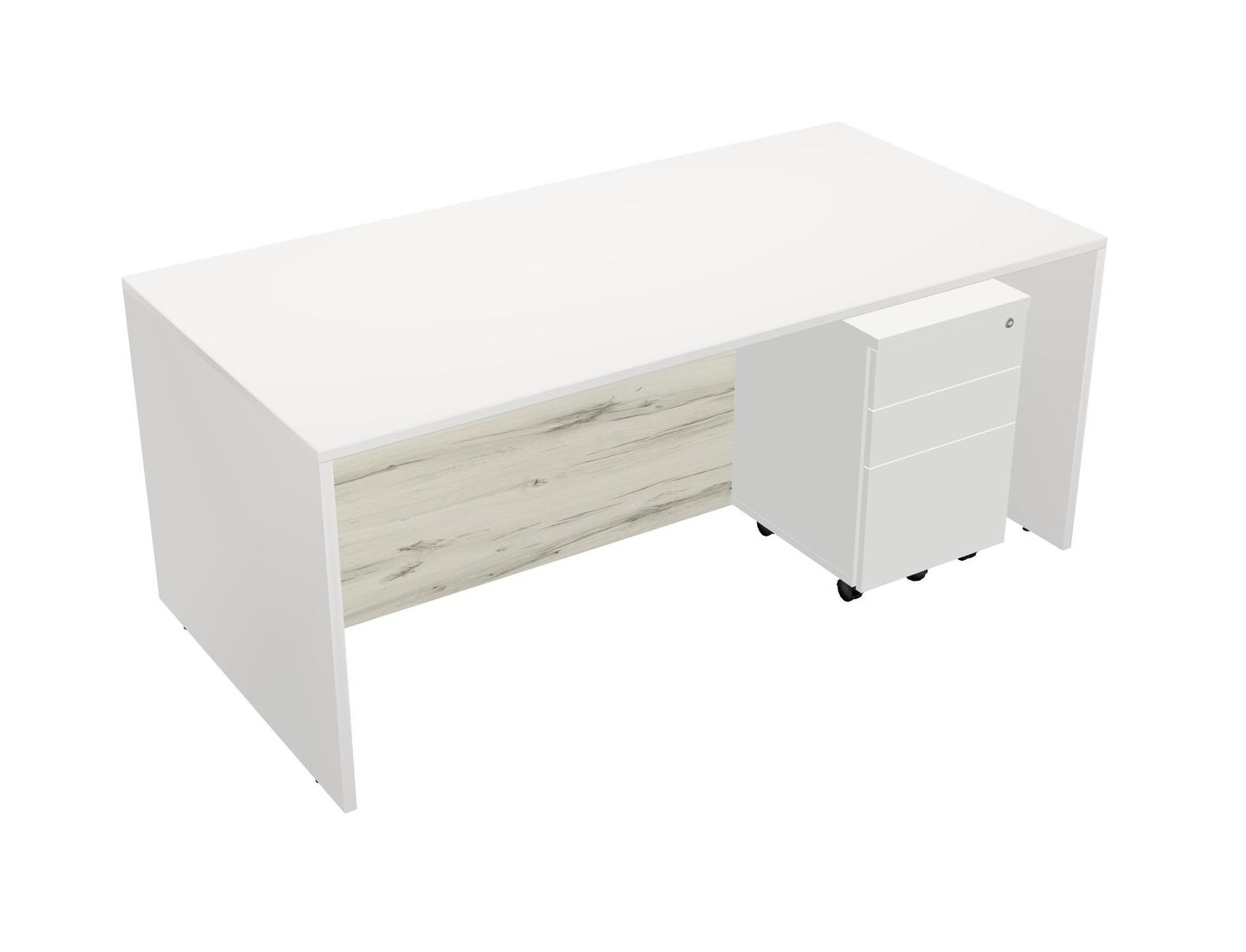 White Rectangular Office Desk Plus White Wooden Mobile Drawers