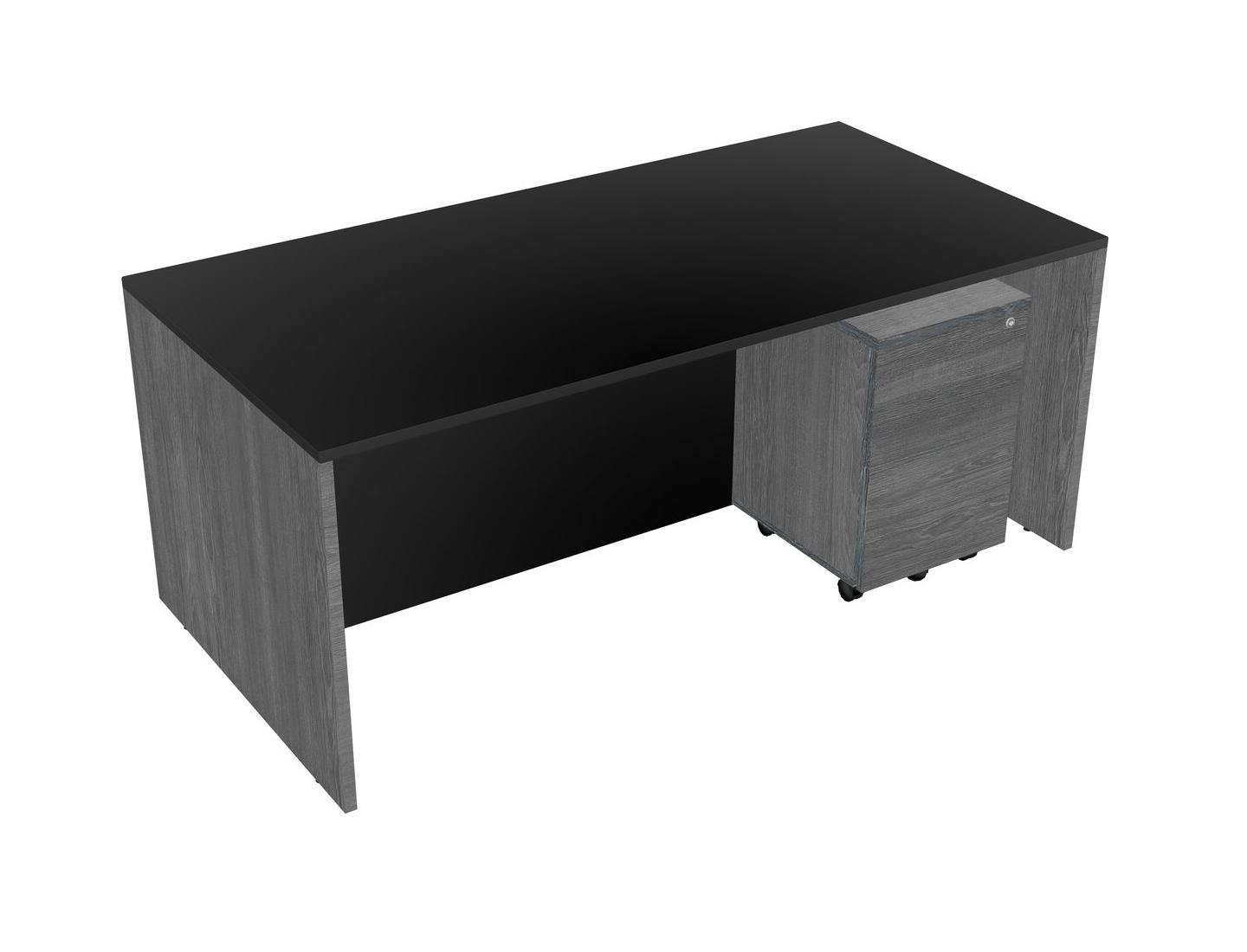 Black Rectangular Office Desk Plus Grey Wooden Mobile Drawers