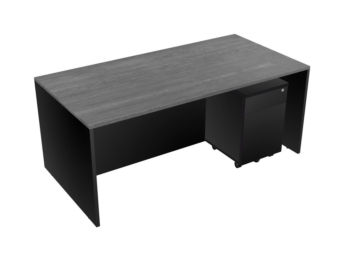 Grey Rectangular Office Desk Plus Black Wooden Mobile Drawers