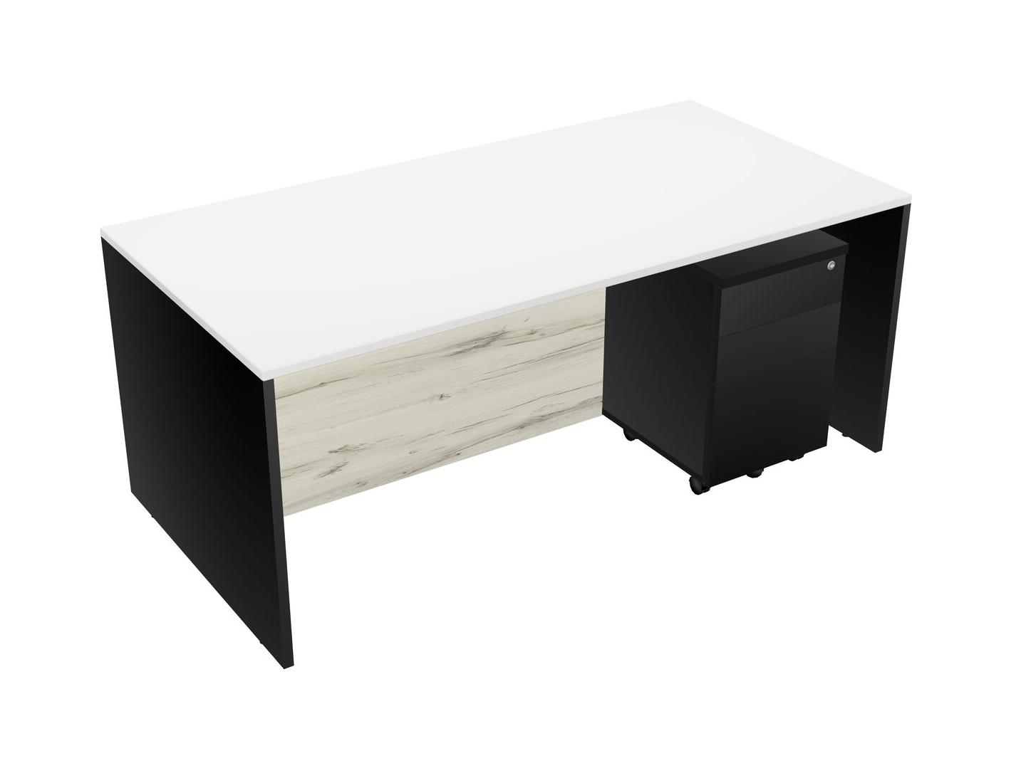 White Rectangular Office Desk Plus Black Wooden Mobile Drawers