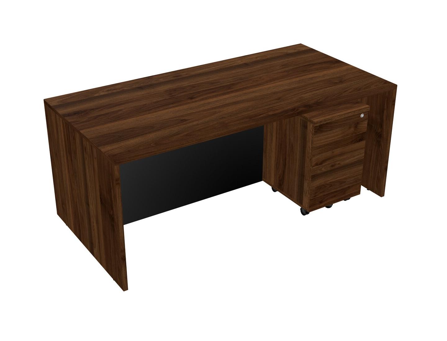 Columbia Walnut Rectangular Office Desk Plus Columbia Walnut Wooden Mobile Drawers