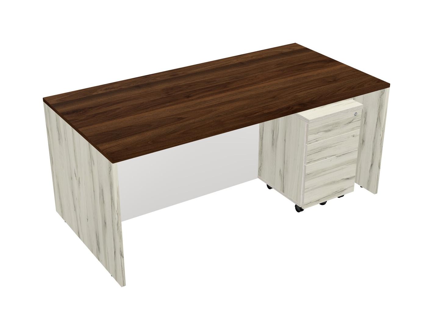 Columbia Walnut Rectangular Office Desk Plus Heinne Holz Wooden Mobile Drawers