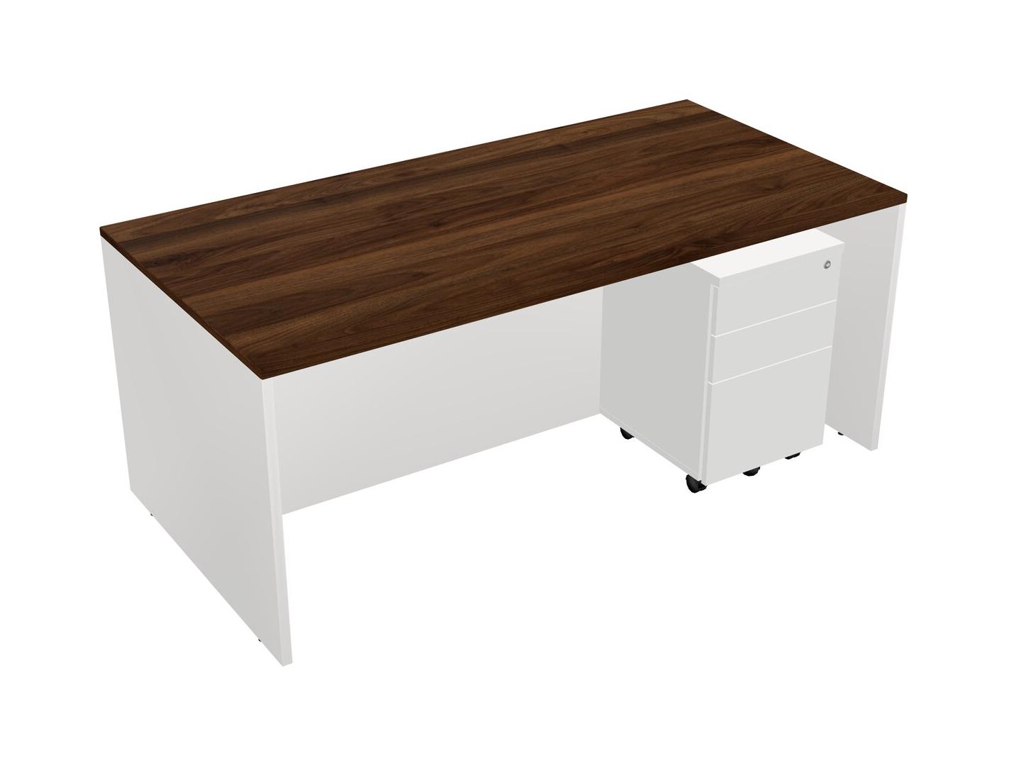 Columbia Walnut Rectangular Office Desk Plus White Wooden Mobile Drawers