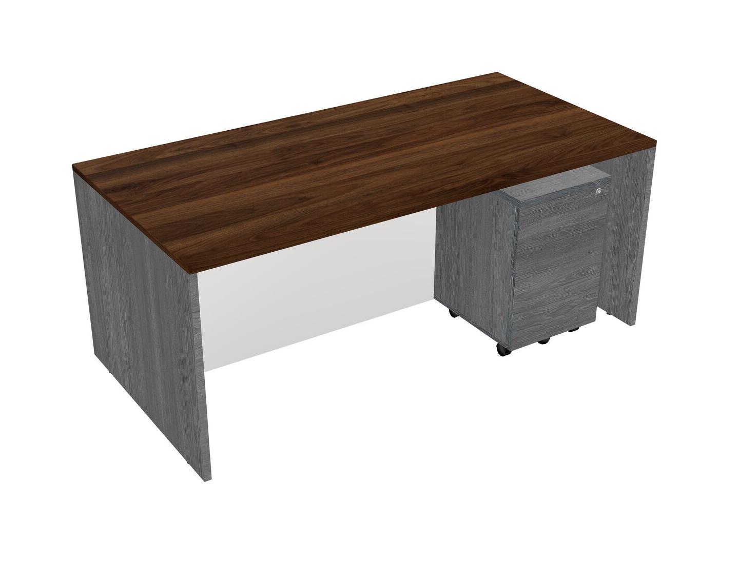 Columbia Walnut Rectangular Office Desk Plus Grey Wooden Mobile Drawers
