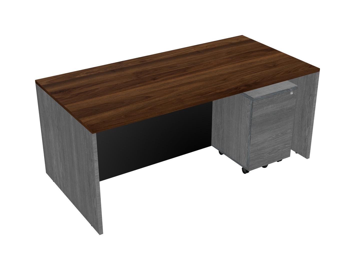 Columbia Walnut Rectangular Office Desk Plus Grey Wooden Mobile Drawers