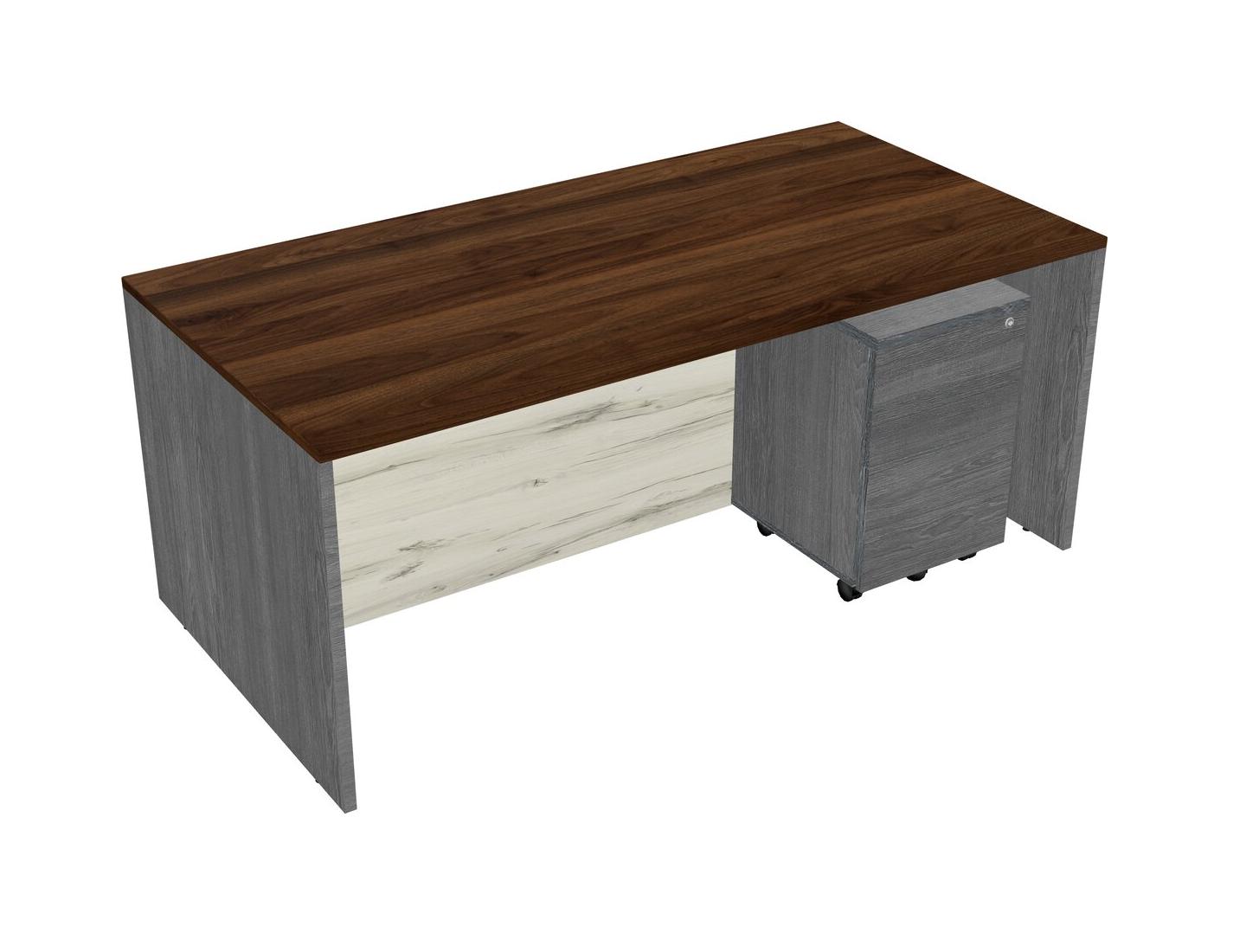 Columbia Walnut Rectangular Office Desk Plus Grey Wooden Mobile Drawers