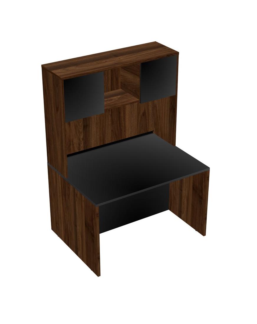 Black Rectangular Office Desk And Columbia Walnut Hutch
