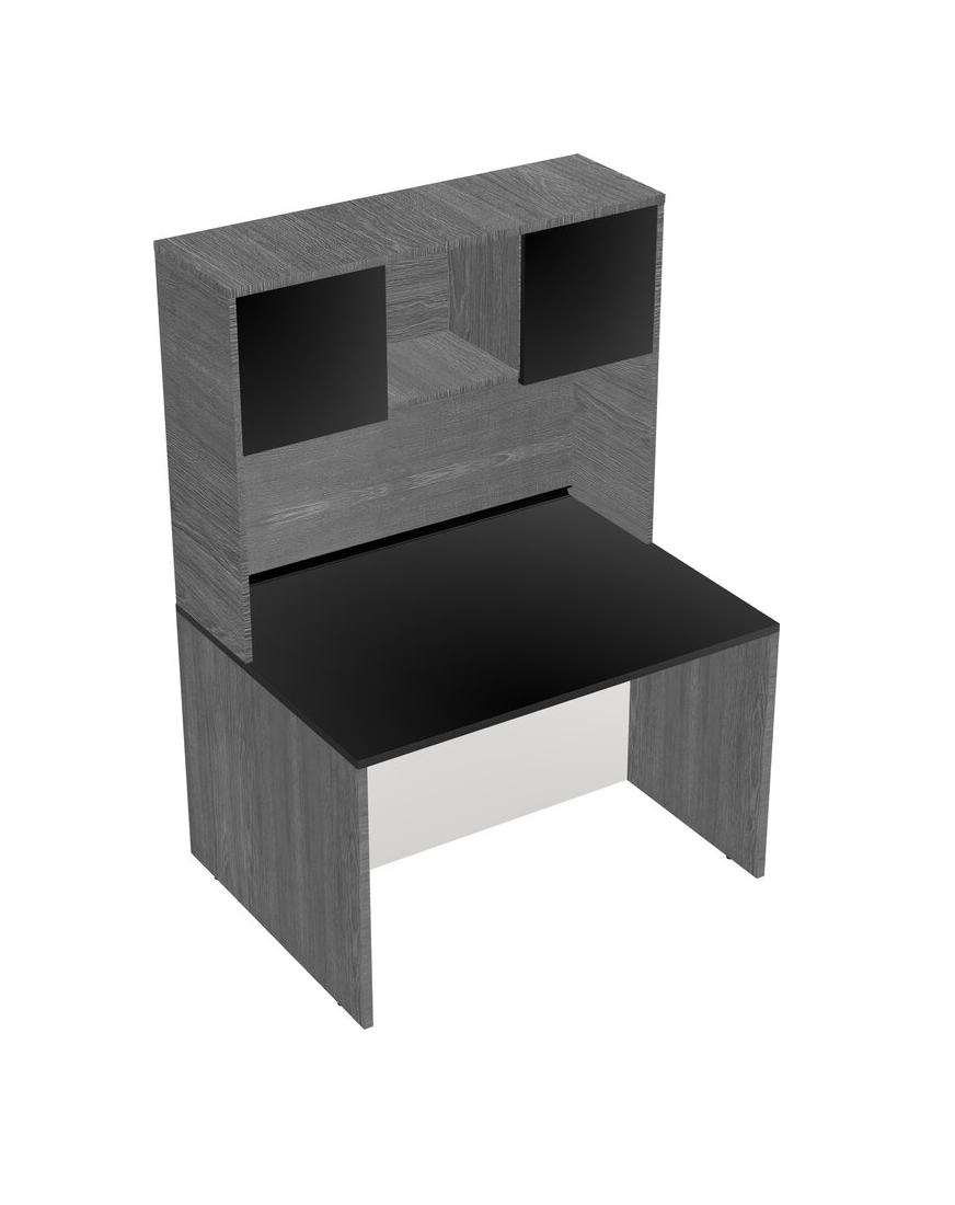 Black Rectangular Office Desk And Grey Hutch
