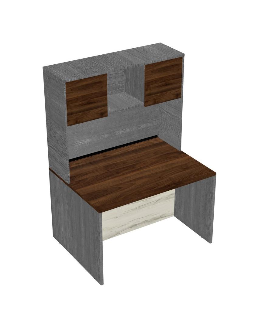 Columbia Walnut Rectangular Office Desk And Grey Hutch