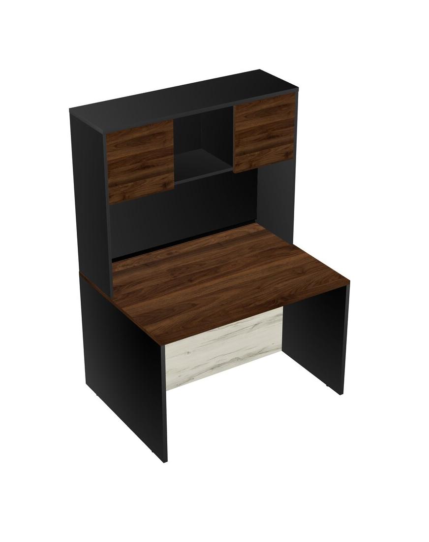 Columbia Walnut Rectangular Office Desk And Black Hutch