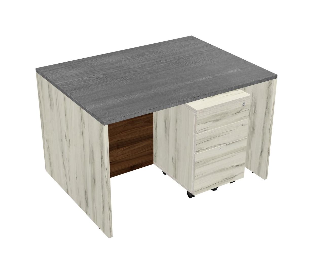 Grey Rectangular Office Desk Plus Heinne Holz Wooden Mobile Drawers