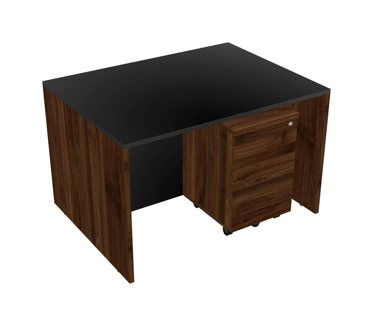 Black Rectangular Office Desk Plus Columbia Walnut Wooden Mobile Drawers