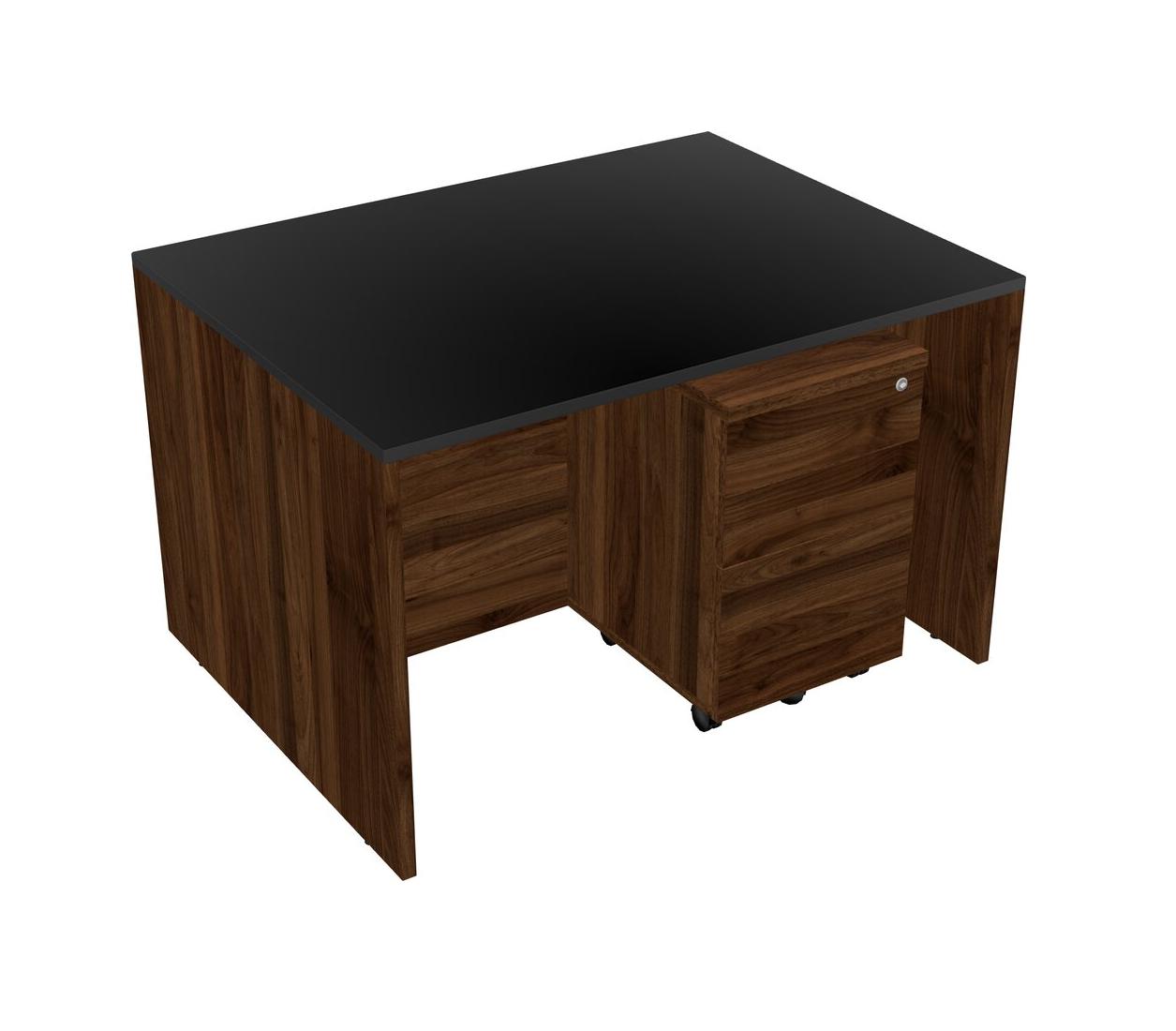 Black Rectangular Office Desk Plus Columbia Walnut Wooden Mobile Drawers