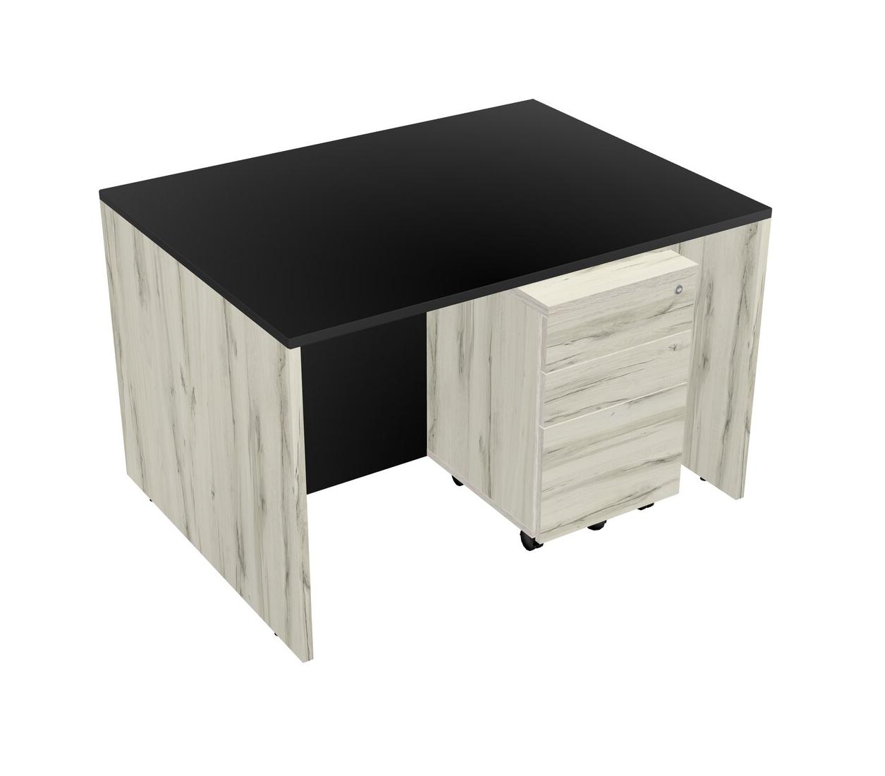 Black Rectangular Office Desk Plus Heinne Holz Wooden Mobile Drawers