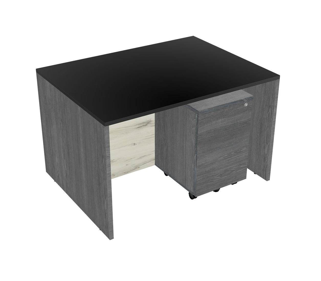 Black Rectangular Office Desk Plus Grey Wooden Mobile Drawers