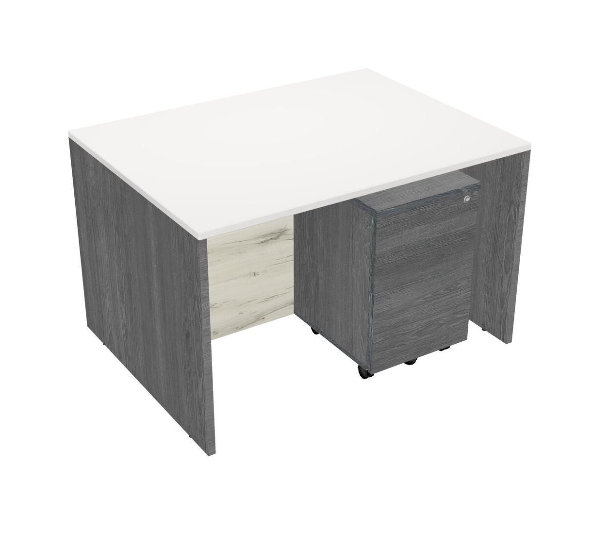 White Rectangular Office Desk Plus Grey Wooden Mobile Drawers