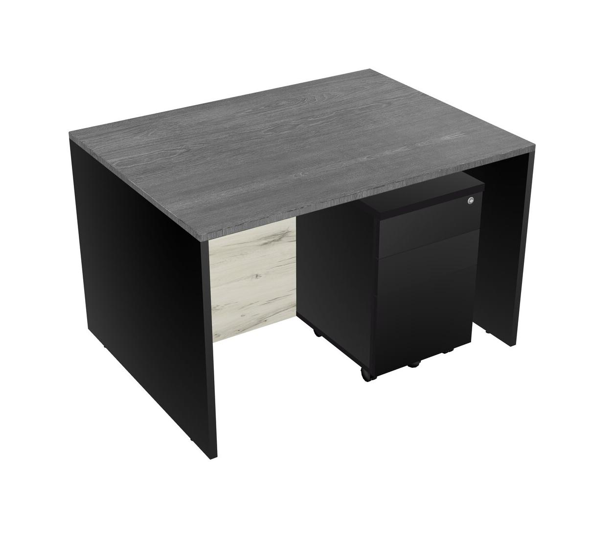 Grey Rectangular Office Desk Plus Black Wooden Mobile Drawers