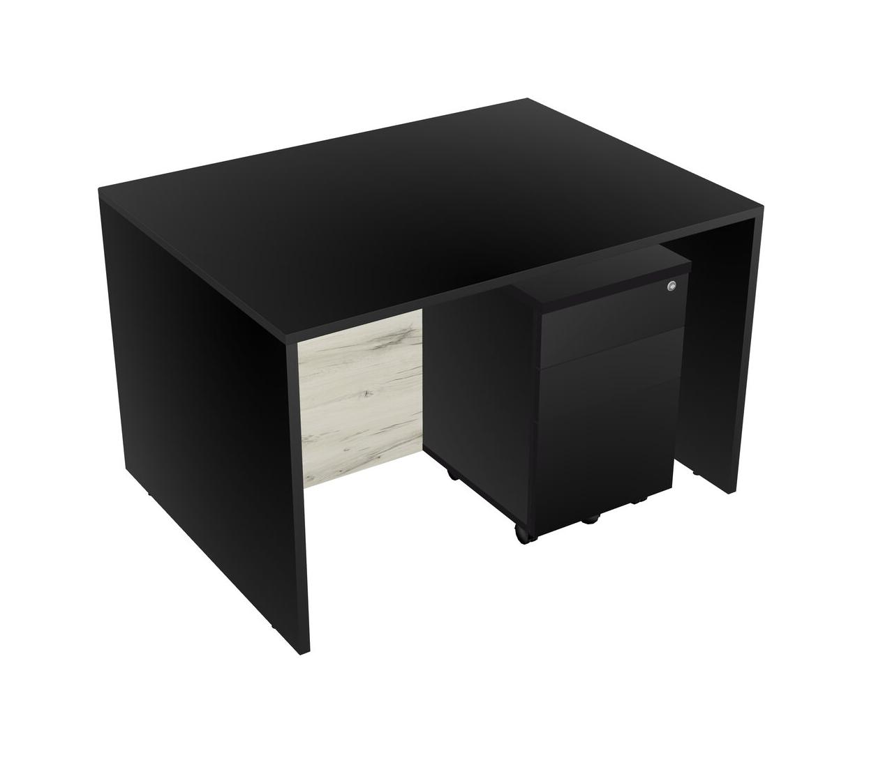 Black Rectangular Office Desk Plus Black Wooden Mobile Drawers