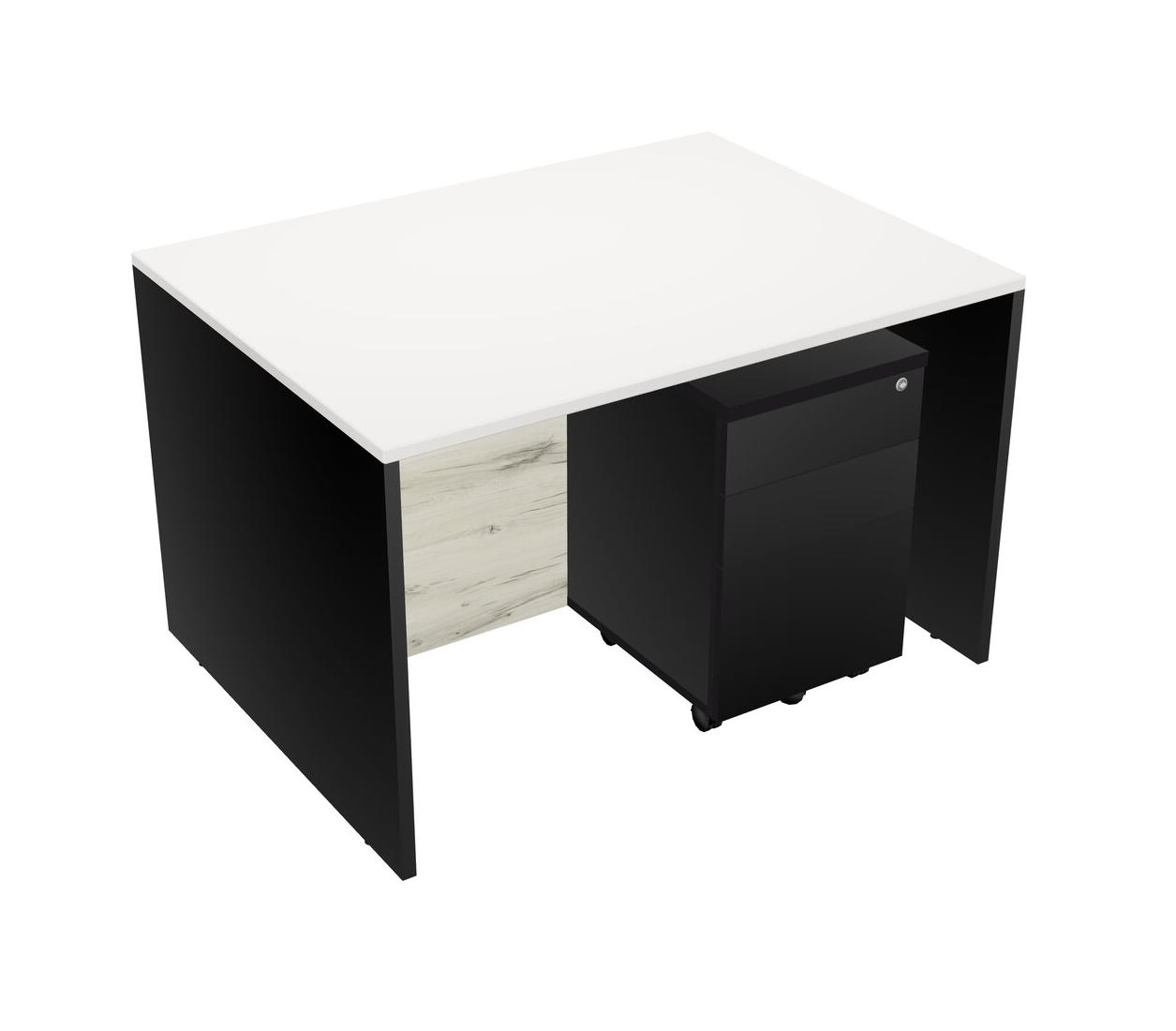 White Rectangular Office Desk Plus Black Wooden Mobile Drawers