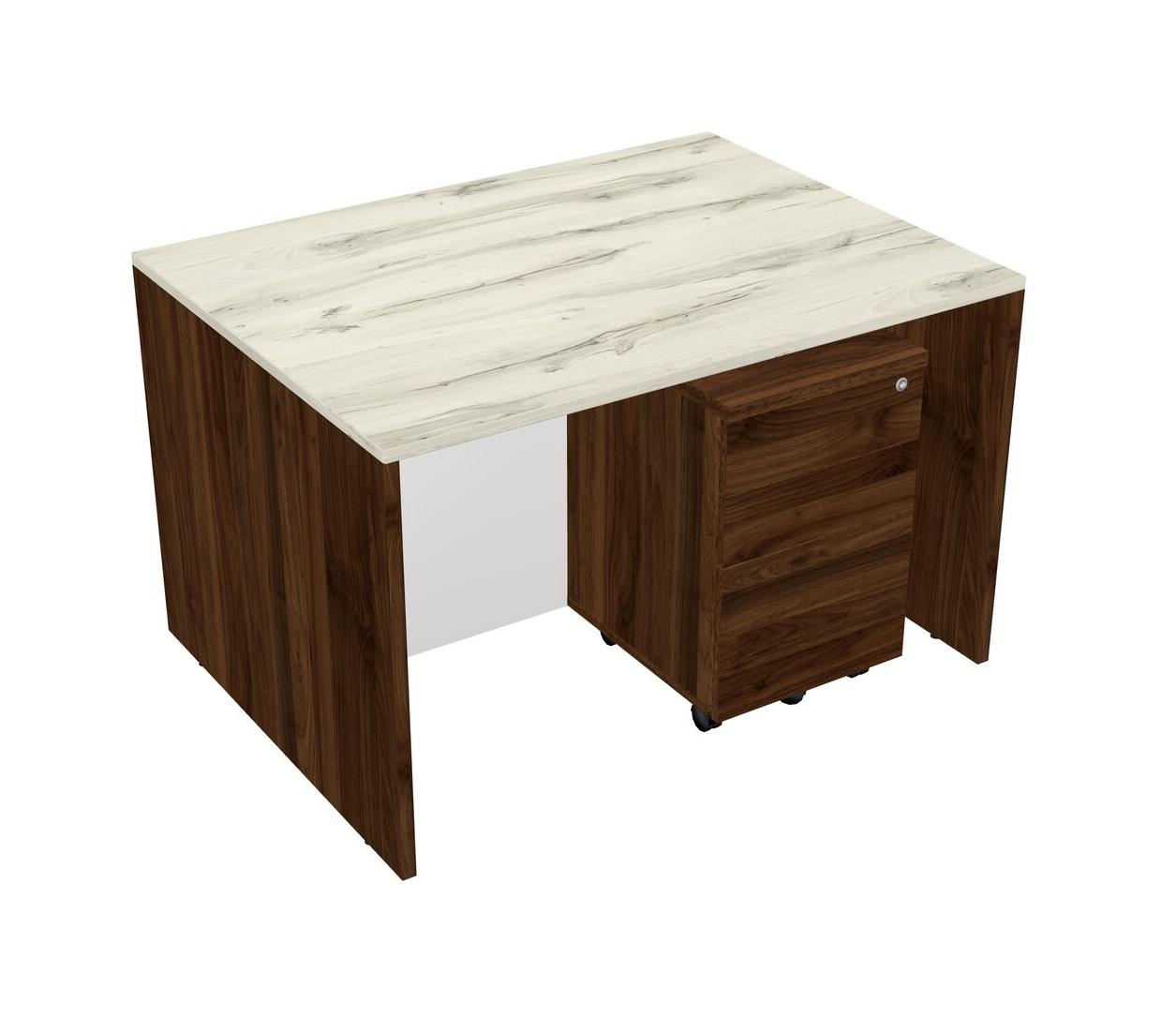 Heinne Holz Rectangular Office Desk Plus Columbia Walnut Wooden Mobile Drawers