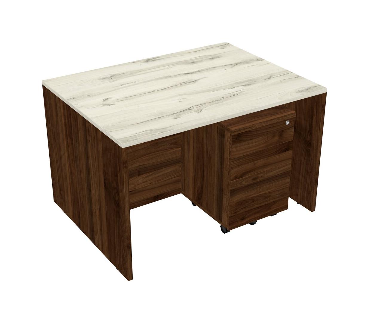 Heinne Holz Rectangular Office Desk Plus Columbia Walnut Wooden Mobile Drawers