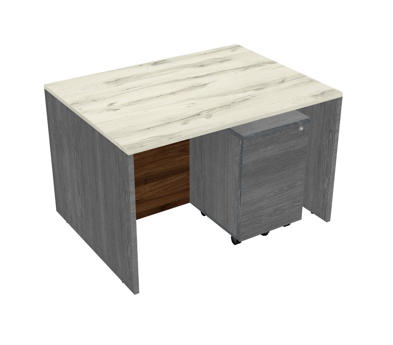 Heinne Holz Rectangular Office Desk Plus Grey Wooden Mobile Drawers