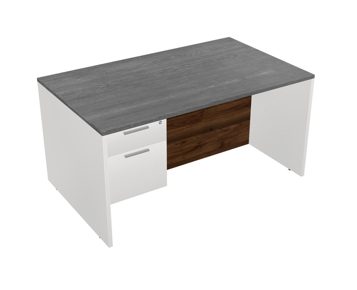Grey Rectangular Office Desk Plus White Hanging Drawers