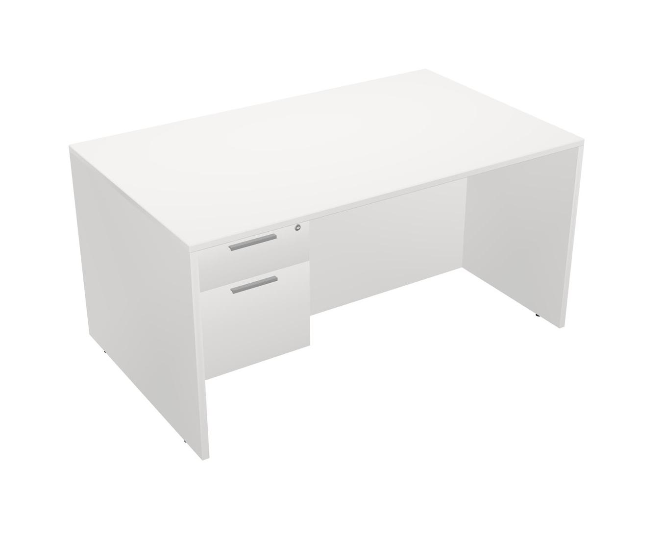 White Rectangular Office Desk Plus White Hanging Drawers