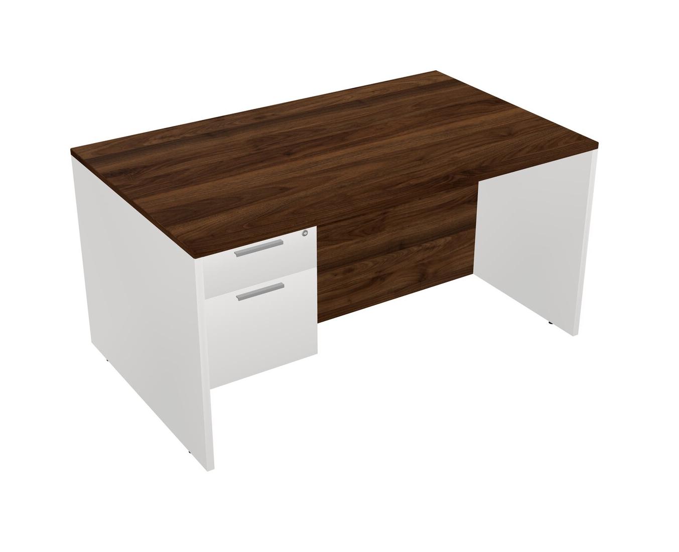 Columbia Walnut Rectangular Office Desk Plus White Hanging Drawers