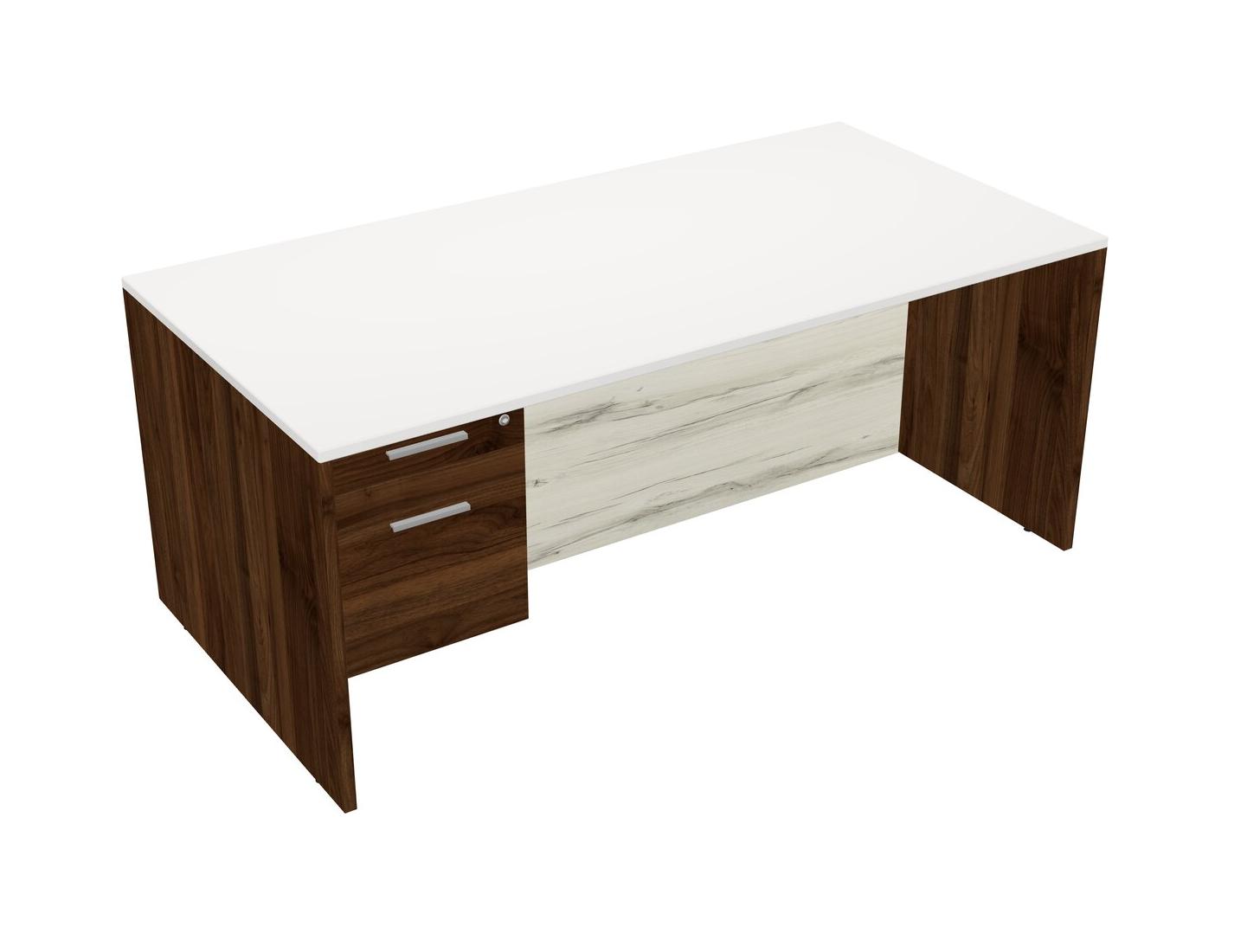 White Rectangular Office Desk Plus Columbia Walnut Hanging Drawers