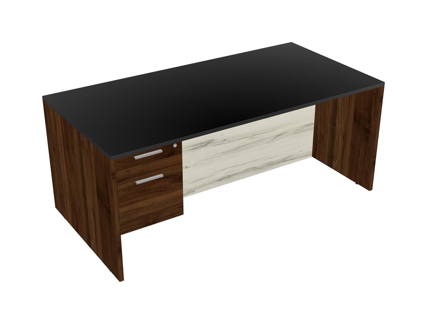 Black Rectangular Office Desk Plus Columbia Walnut Hanging Drawers