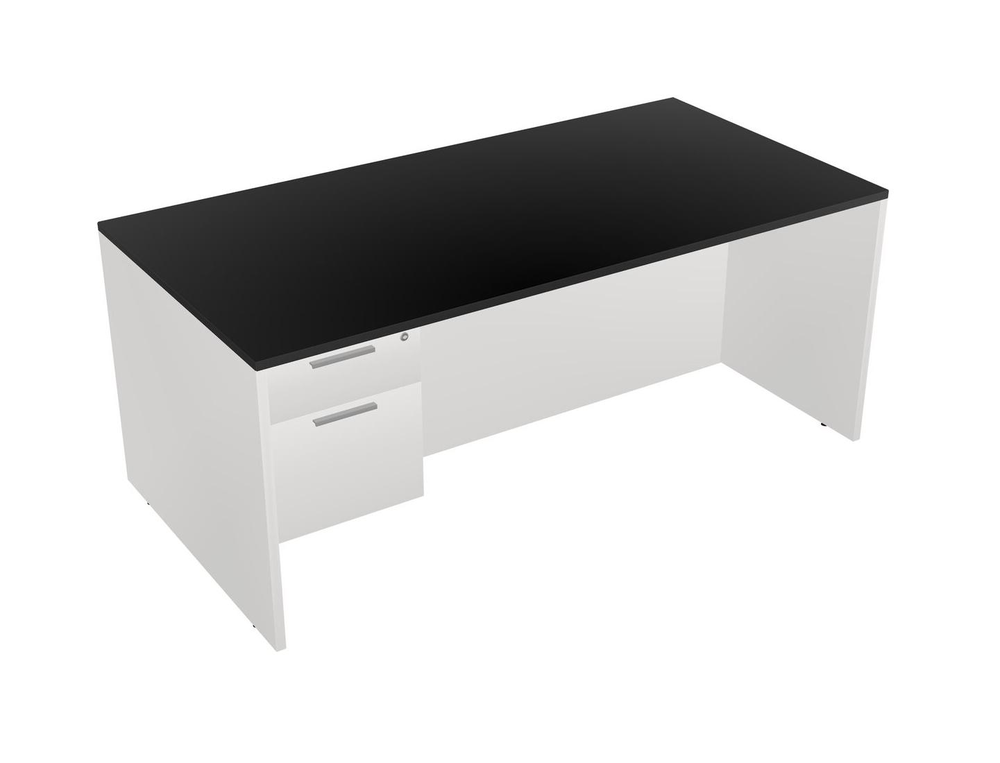 Black Rectangular Office Desk Plus White Hanging Drawers