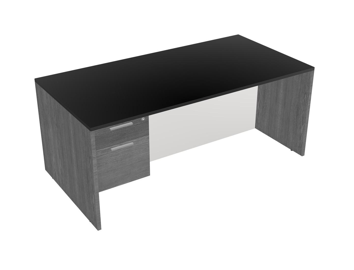 Black Rectangular Office Desk Plus Grey Hanging Drawers