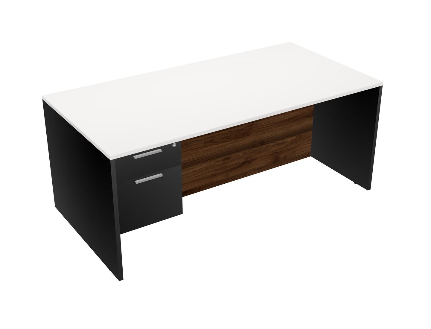 White Rectangular Office Desk Plus Black Hanging Drawers