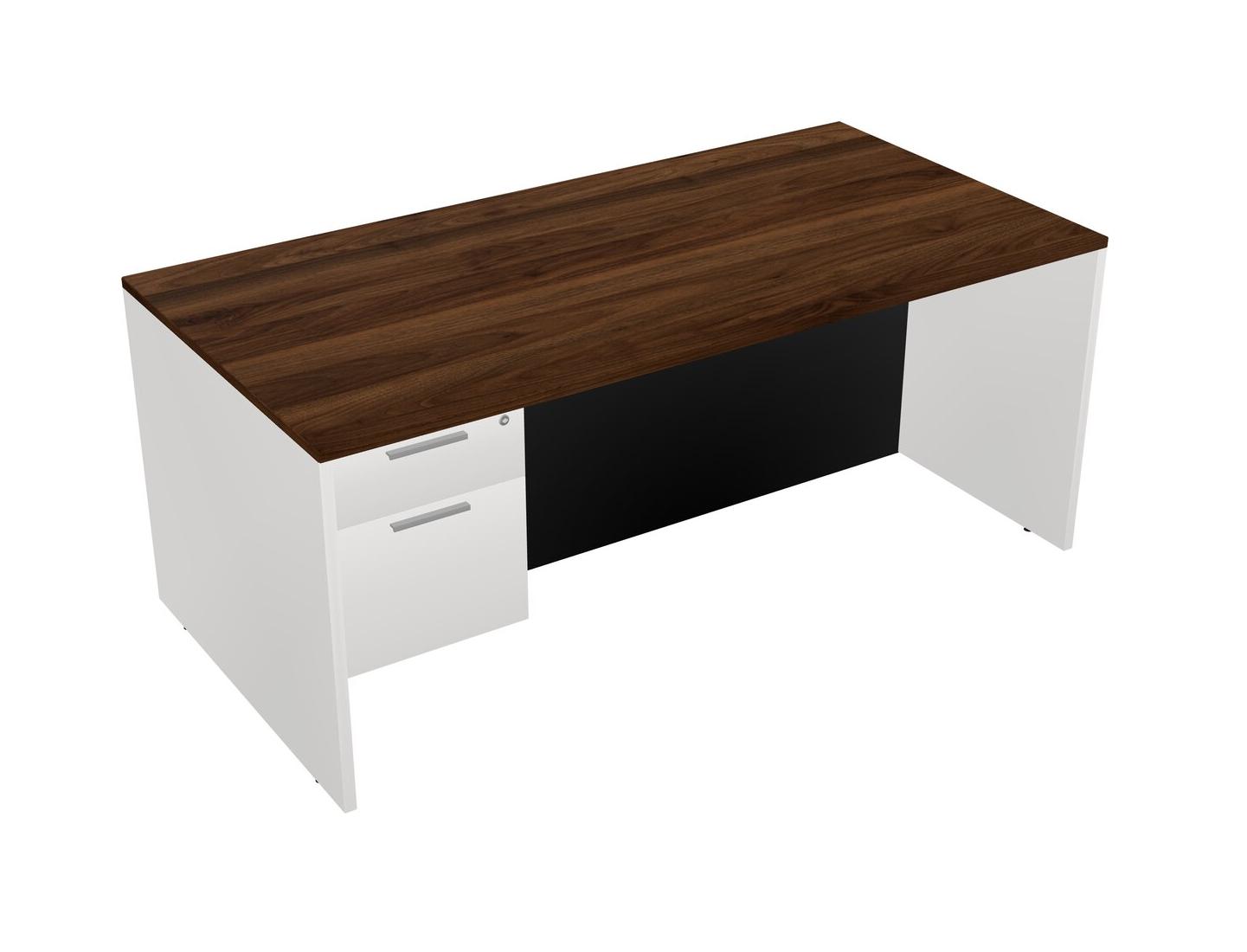 Columbia Walnut Rectangular Office Desk Plus White Hanging Drawers